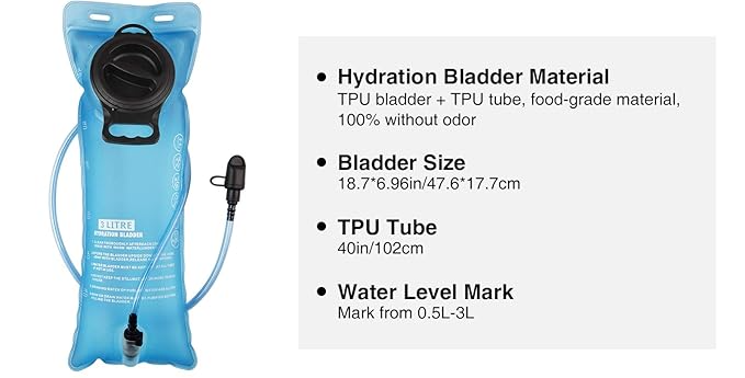 Our hiking hydration pack has comprehensive features for hiking adventures and outdoor sports. The 900D abrasion-resistant nylon material, multi pockets (9 pockets including 4 zippered pockets and 5 multi compartments), BPA and odor free TPU hydration bladder, 3L large capacity hydration reservoir, double fastened shoulder and waist straps, tactical molle compatible system integrate into unique hiking water backpack.