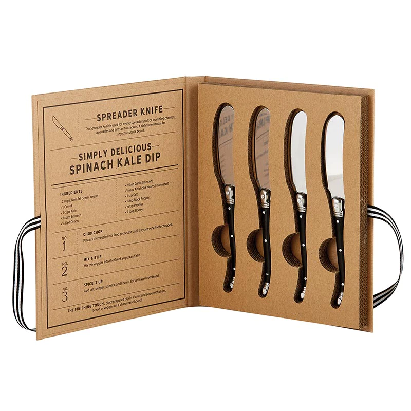 • Set of Four Charcuterie Spreader Knives inBook Style Box with Ribbon