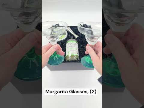 At the center of this set are two green stemmed margarita glasses, custom engraved for a lasting impression. Paired with premium margarita mix and lime margarita rim salt in a classic tin, this gift makes it easy to craft the perfect pour. A stainless steel jigger ensures precise mixing, while the book Margaritas: Frozen, Spicy, and Bubbly – Over 100 Drinks for Everyone! adds inspiration for endless variations, from classic lime to creative twists.