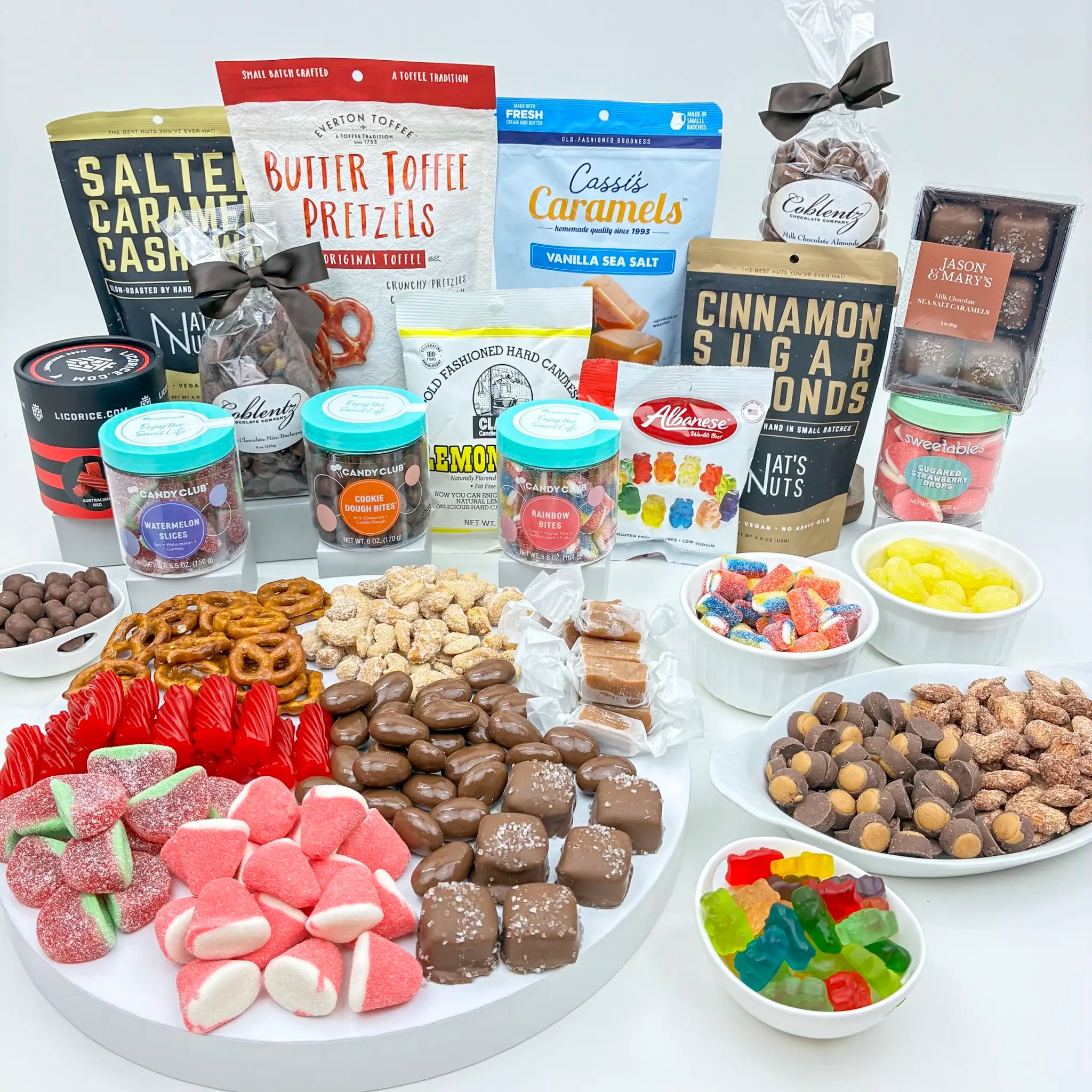 From chewy gummies and classic licorice to rich chocolate bites and buttery caramels, each tier builds on the next to create an abundant, layered tasting experience. Whether you select the Small, Medium, or Large option, every box feels festive, cohesive, and ready to impress.