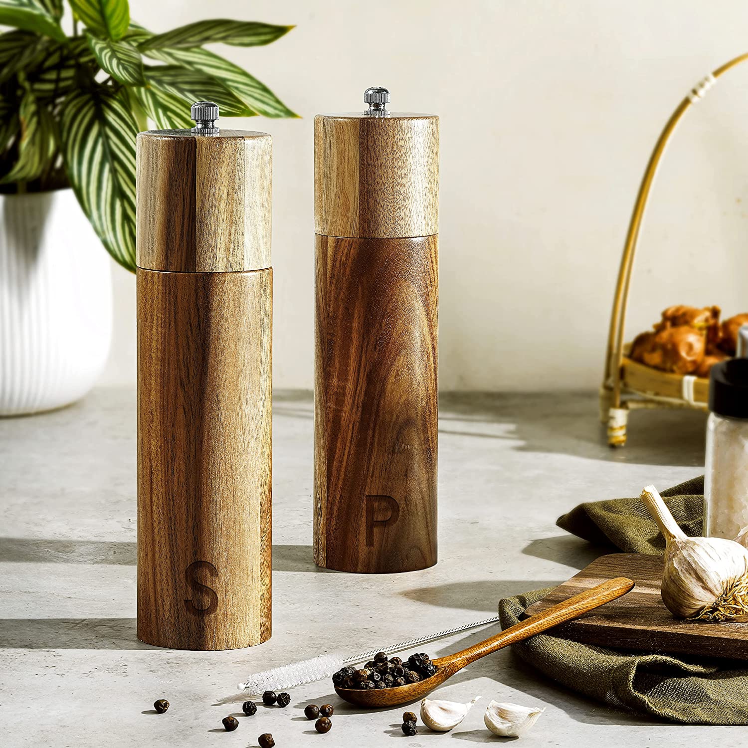 Acacia Wood Pepper Mill & Salt Grinder with Adjustable Coarseness