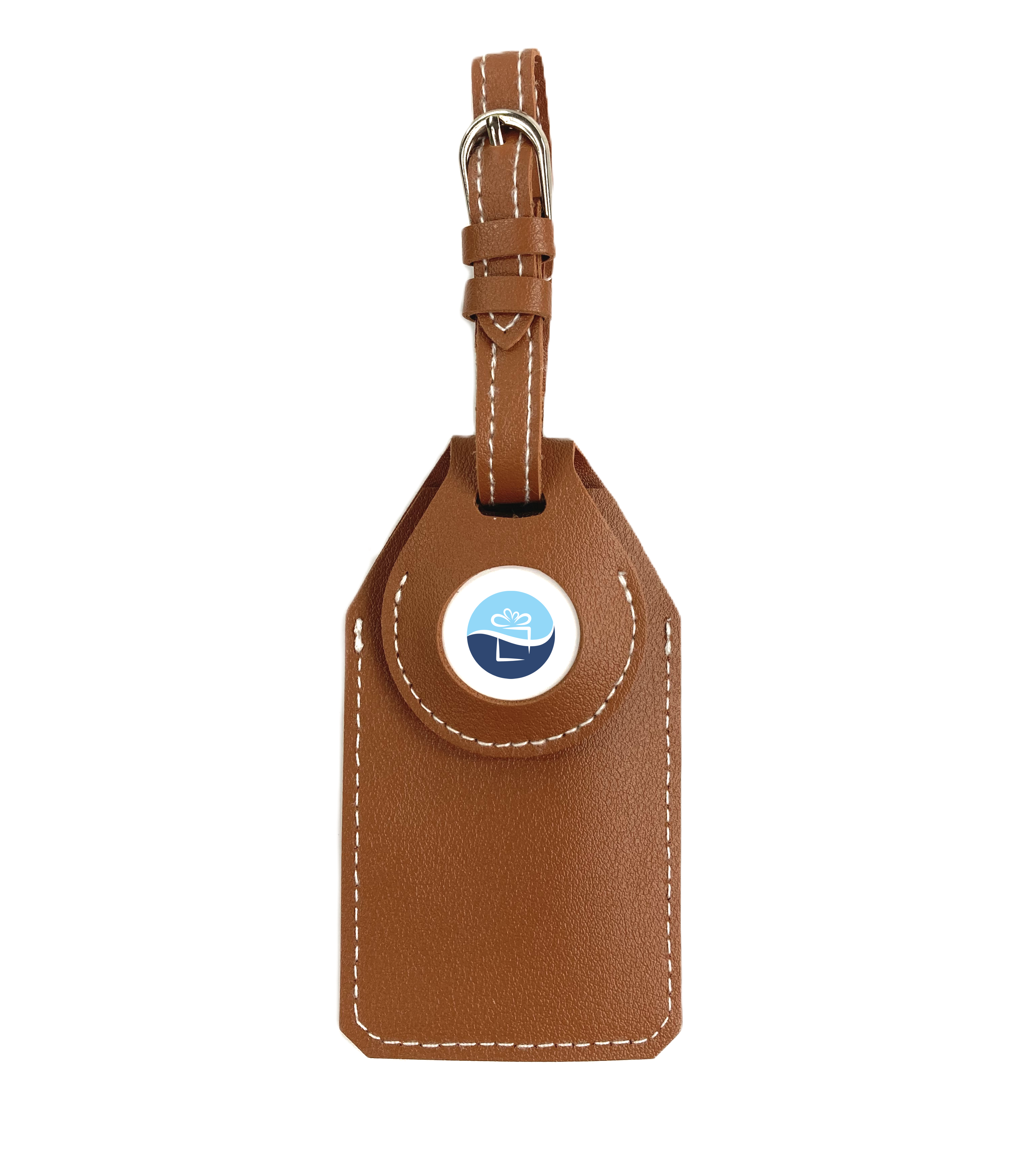 Branded or personalized PU leather luggage tag with branded or personalized Apple Airtag.