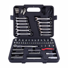 Contains a wide range SAE and Metric size of combination wrenches, 3/8 & 1/4 inch drive sockets, 3/8 inch drive ratchet handle, hex key and 1/4 inch drive screwdriver bits