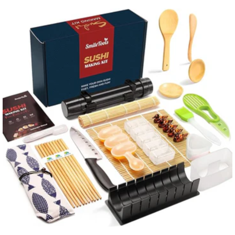 Premium Sushi Making Kit for Beginners - This step-by-step instruction book guides you through irresistible sushi making adventures in the comfort of your own home. The durable and high quality sushi kit includes the essential tools you need to prepare authentic sushi.